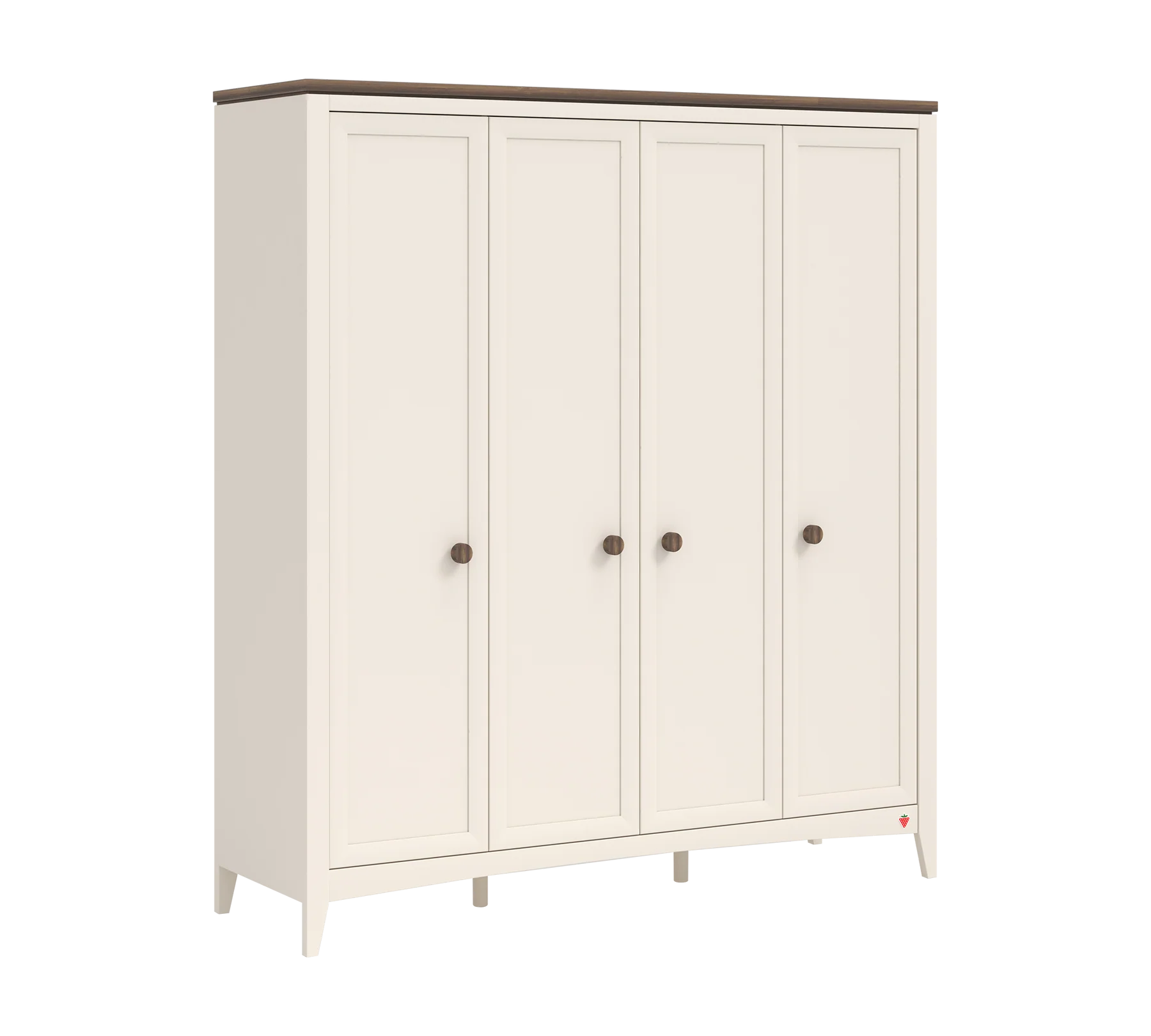 Študentská 4-dverová skriňa zo série LAPEL  je ideálnym riešením pre študentské izby. Vďaka veľkému úložnému priestoru s praktickými policami a šatníkovou časťou ponúka dostatok miesta pre efektívne usporiadanie oblečenia a osobných vecí.