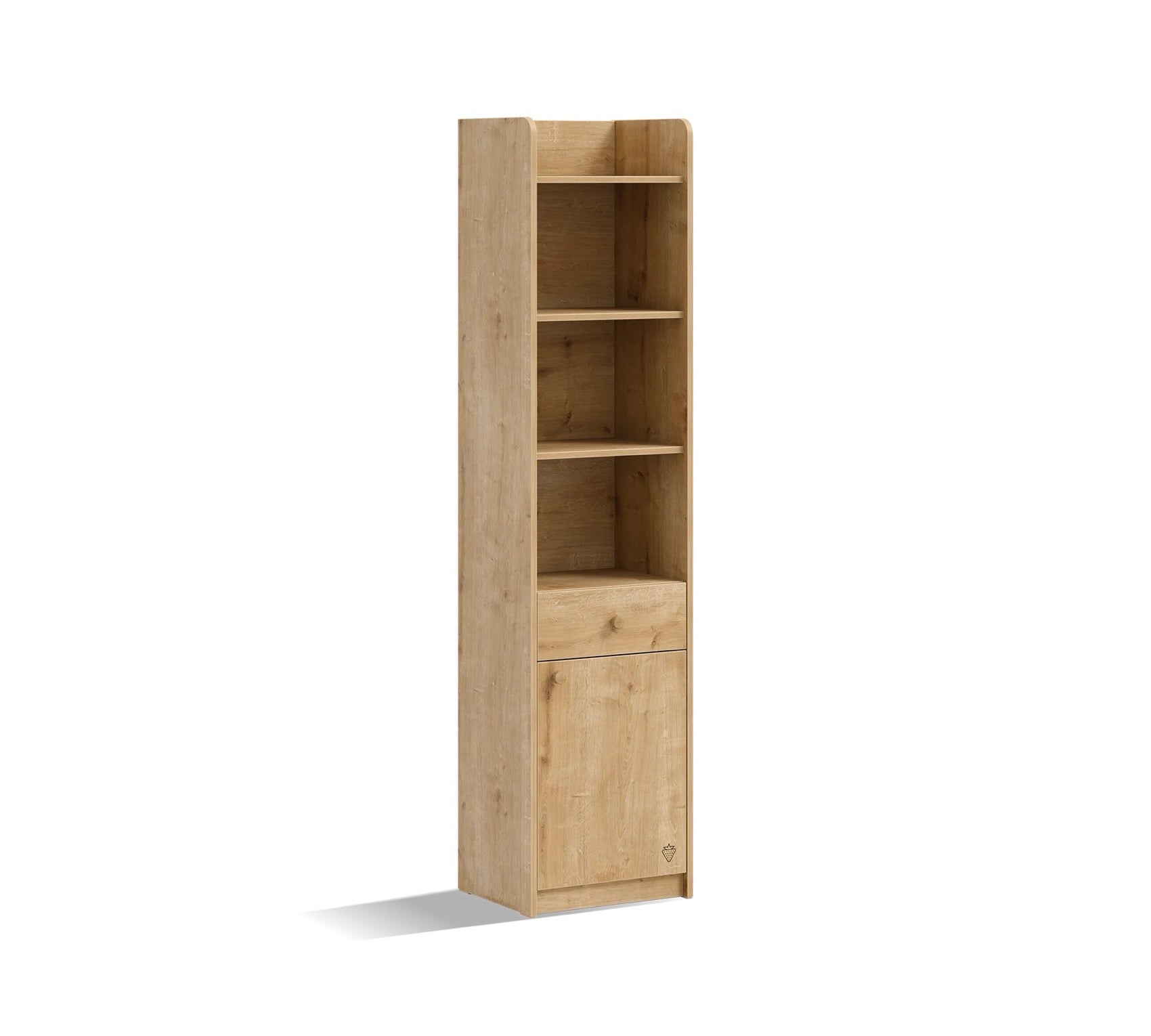 Praktická a moderná Študentská knižnica MOCHA je ideálnym riešením pre každú študentskú izbu. Je vybavená skrinkou s dverami, jednou zásuvkou a otvorenými policami, čo umožňuje efektívne uskladnenie kníh všetkých veľkostí. Je vyrobená z kvalitných materiálov, ktoré zaručujú dlhú životnosť a odolnosť voči opotrebovaniu. S prírodnou farbou sa táto knižnica skvele hodí do rôznych interiérov. Balenie obsahuje mechanizmus na upevnenie do steny, ktorý zabraňuje prevrhnutiu. Zaoblené rohy knižnice zabraňujú úrazom.