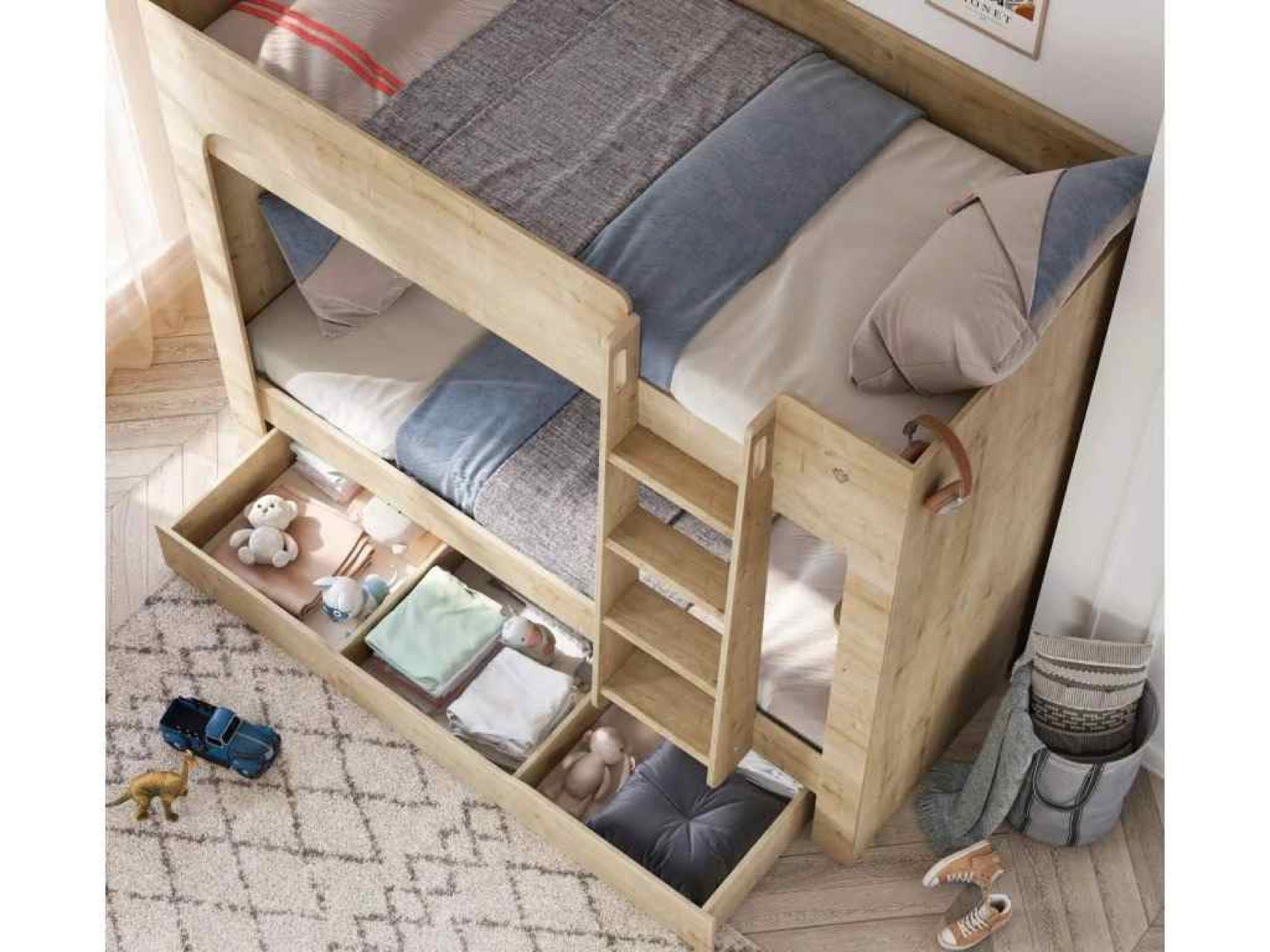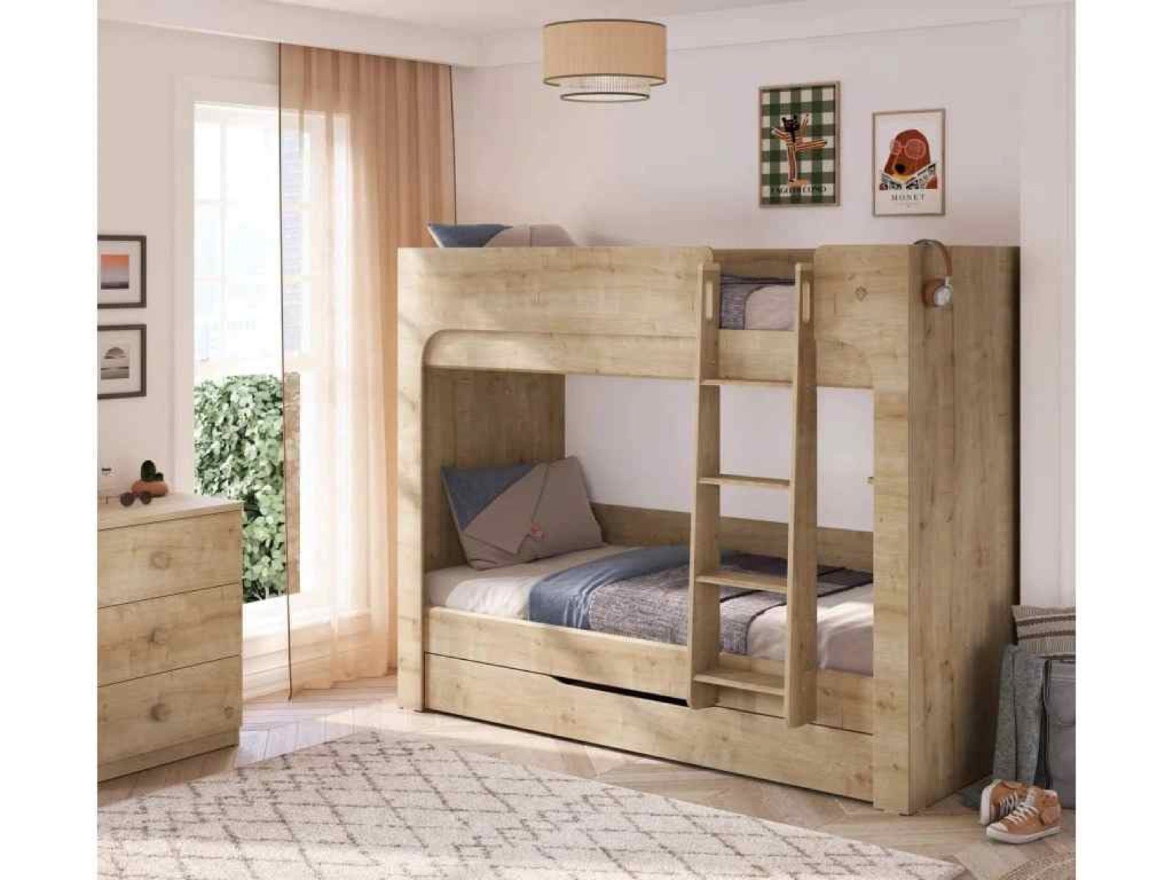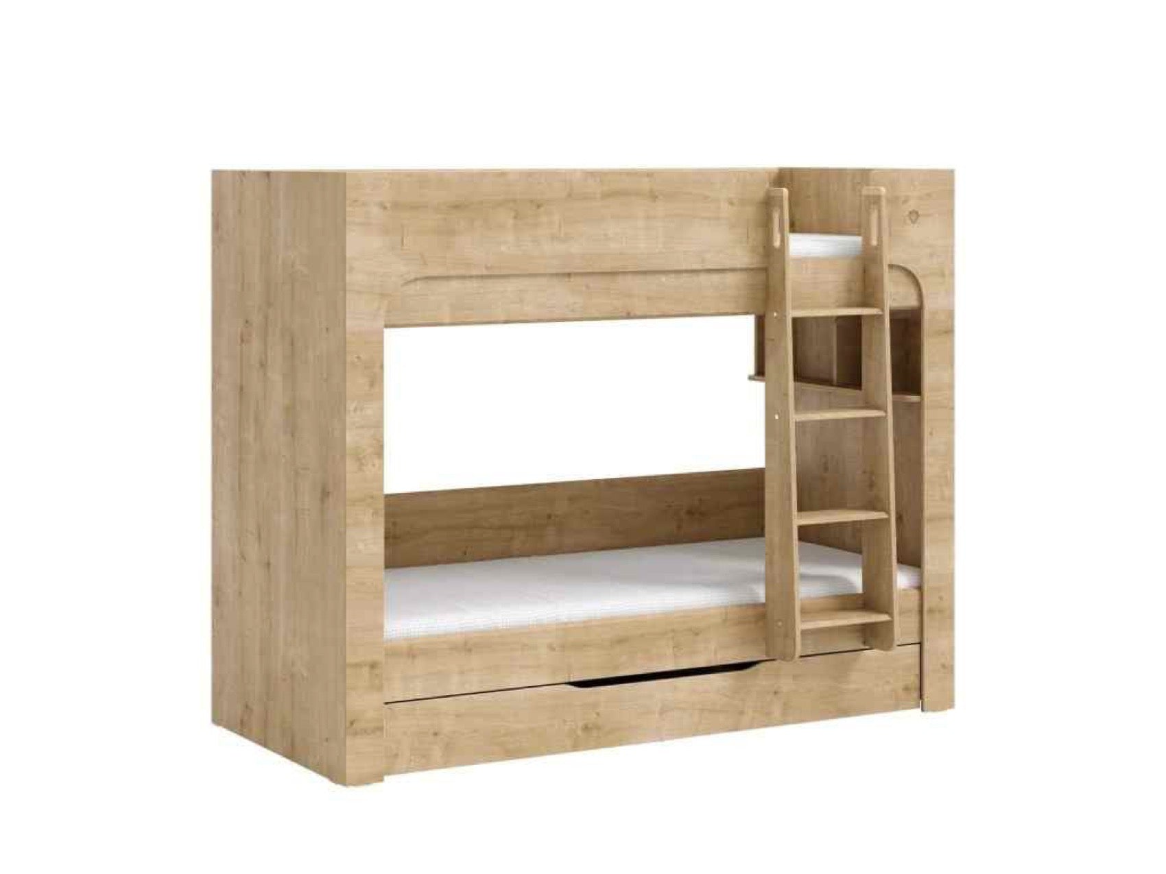Študentská poschodová posteľ MOCHA je ideálnym riešením pre menšie interiéry, kde je potrebné efektívne využiť priestor. Posteľ je navrhnutá tak, aby poskytovala bezpečie a pohodlie pre vaše deti. V cene postele sú zahrnuté kvalitné perforované doskové rošty, ktoré sú umiestnené na spevnenom kovovom ráme, čo zabezpečuje stabilitu a dlhú životnosť produktu. Pre dodatočné úložné riešenie môžete doplniť posteľ výsuvom pod posteľ (20.30.1424.00), ktorý nie je zahrnutý v cene. Každé lôžko má nosnosť až 130 kg, čo zaručuje, že posteľ bude schopná uniesť aj väčšie deti. Posteľ je vybavená praktickou policou, ktorá poskytuje dodatkovej úložný priestor pre hračky alebo knihy.