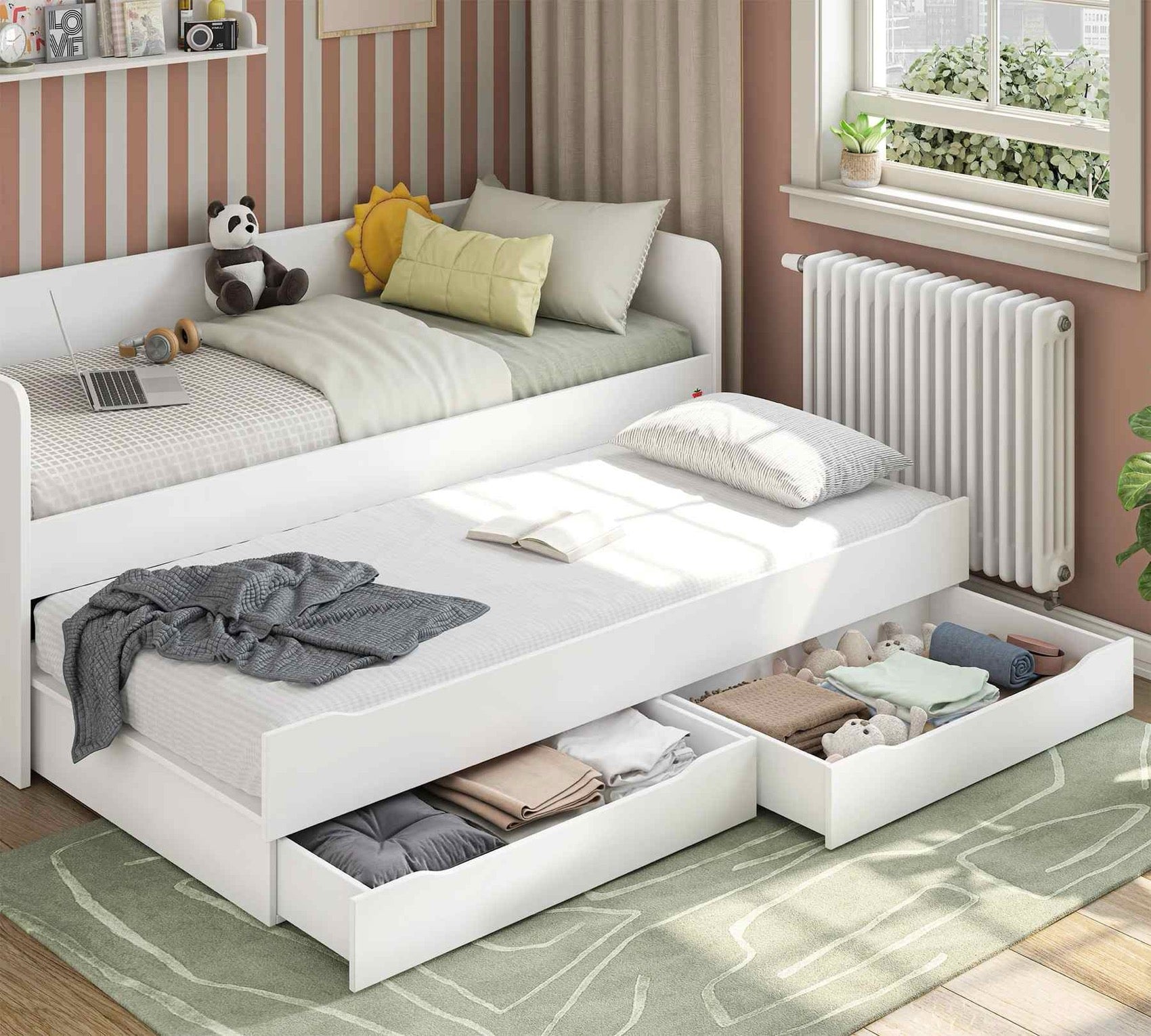 Študentská posteľ STUDIO VARIA WHITE s prístelkou ponúka ideálne riešenie pre moderné detské izby. S prístelkou môžete jednoducho poskytnúť ďalšie lôžko pre návštevy alebo súrodencov, pričom nezaberá zbytočne veľa miesta. Perfektná voľba pre menšie priestory.