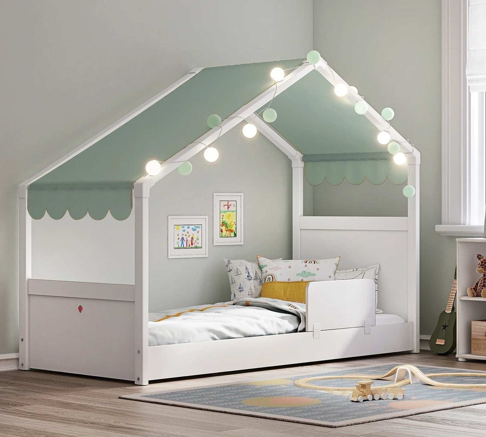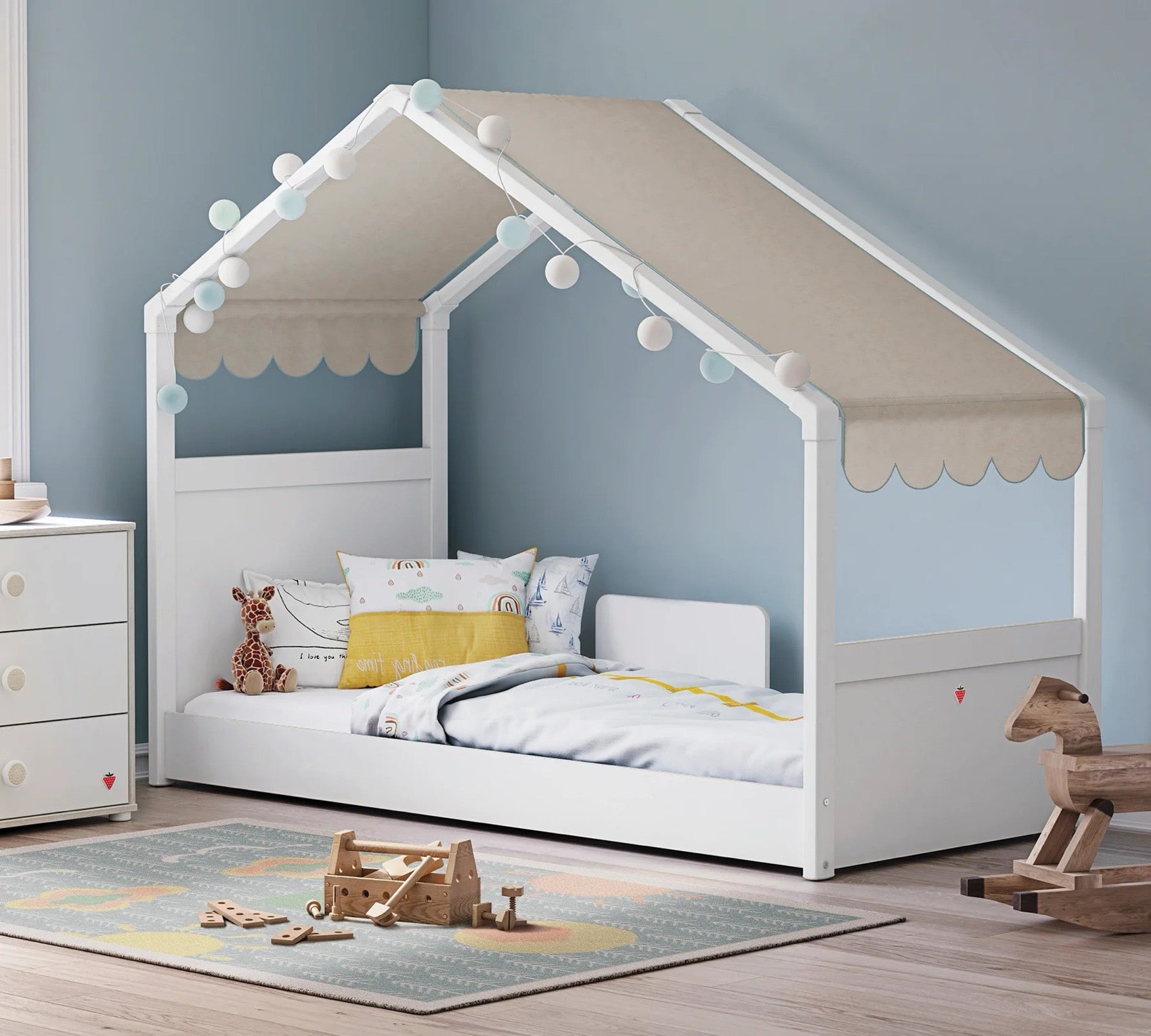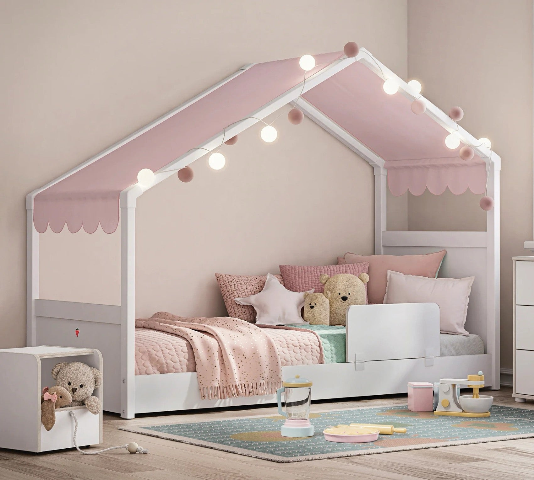 Detská posteľ v tvare domčeku MONTES WHITE (90x200cm) je ideálnym kúskom nábytku pre vaše deti. Poskytuje im nielen pohodlie počas spánku, ale aj štýlovú a hravú atmosféru v izbe. Nosnosť postele je 130 kg. Úroveň lôžka sa dá meniť - pri vrchnej polohe roštu je možné pod posteľ dať prístelku MONTES WHITE (90x190 cm). K posteli je možné, pre ešte lepší dizajn, dokúpiť látkovú strechu v ružovej, zelenej alebo krémovej farbe. Cena nezahŕňa matrac a textilné doplnky.