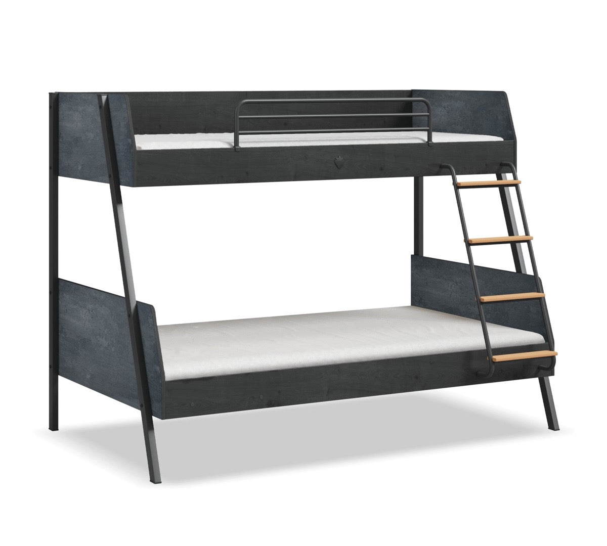 Poschodová posteľ Dark Metal je ideálnou voľbou pre študentov a rodiny, ktoré hľadajú kombináciu štýlového dizajnu a praktického využitia. S rozmermi horného lôžka 90x200 cm a spodného lôžka 120x200 cm poskytuje táto posteľ maximálny komfort a priestor v každej izbe. Jej pevná konštrukcia s nosnosťou lôžka až 130 kg zaručuje dlhú životnosť a spoľahlivosť. Schody so špeciálnou reliéfnou úpravou sú navrhnuté tak, aby minimalizovali riziko pokĺznutia a zabezpečili bezpečný pohyb medzi poschodiami. Posteľ je vyrobená z kvalitných materiálov, ktoré zabezpečujú odolnosť a dlhú životnosť. Zaoblené rohy postele zabraňujú úrazom. Rebrík postele môžete použiť z oboch strán. Konštrukcia postele umožňuje jednoduchý prístup pre robotické vysávače.