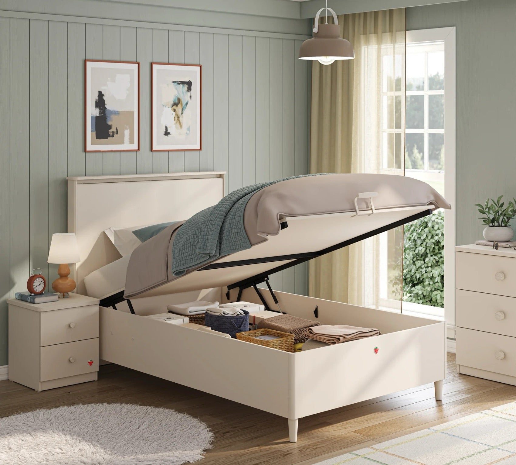 Študentská posteľ s úložným priestorom zo série VARIA svojím dizajnom oživí každú izbu. Posteľ ponúka USB-C vstup pre nabíjanie smartfónov či tabletov. Súčasťou postele je kvalitný perforovaný doskový rošt na spevnenom kovovom ráme. Vďaka jej zabudovanému úložnému priestoru Vám poskytuje veľký priestor na odkladanie vecí. Vyklápa sa do hora. Nosnosť postele je 130kg. Jej zaoblené rohy zabraňujú úrazom. Cena nezahŕňa matrac a textilné doplnky. Vďaka vysokým nožičkám je kompatibilná s robotickým vysávačom.