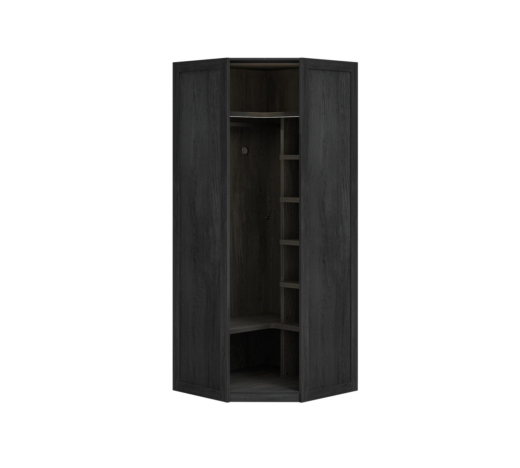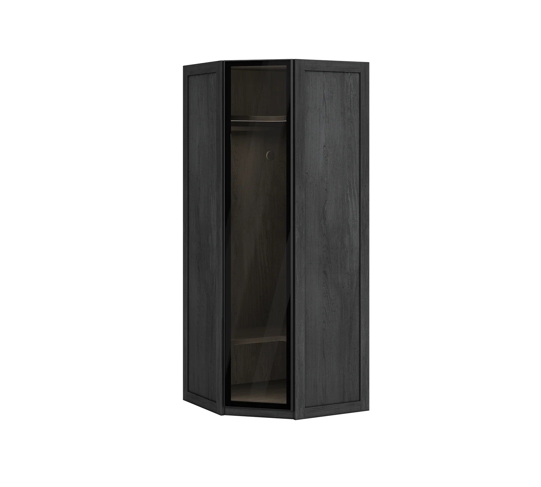 Nechajte svoje rohy získať nový rozmer s eleganciou, ktorú prináša rohová skriňa BLACK. Tento štýlový kúsok nábytku je navrhnutý tak, aby maximálne využil priestor vo vašej izbe. S presklenými dverami z tvrdeného skla sa nielenže zvýraznia vaše obľúbené predmety, ale zároveň aj osvetlia rohové oblasti interiéru pomocou moderne integrovaného LED osvetlenia. Rohová skriňa je vybavená praktickými policami a závesným priestorom, čo ju robí ideálnym riešením pre uskladnenie, pričom zachováva estetický dojem. Jej čierne prevedenie v kombinácii so sklom sa hodí do rôznych štýlov usporiadania izieb, pričom si môžete vybrať, či skriňu namontujete vpravo alebo vľavo.