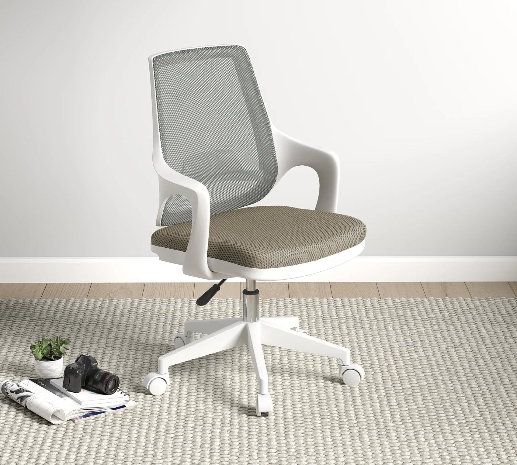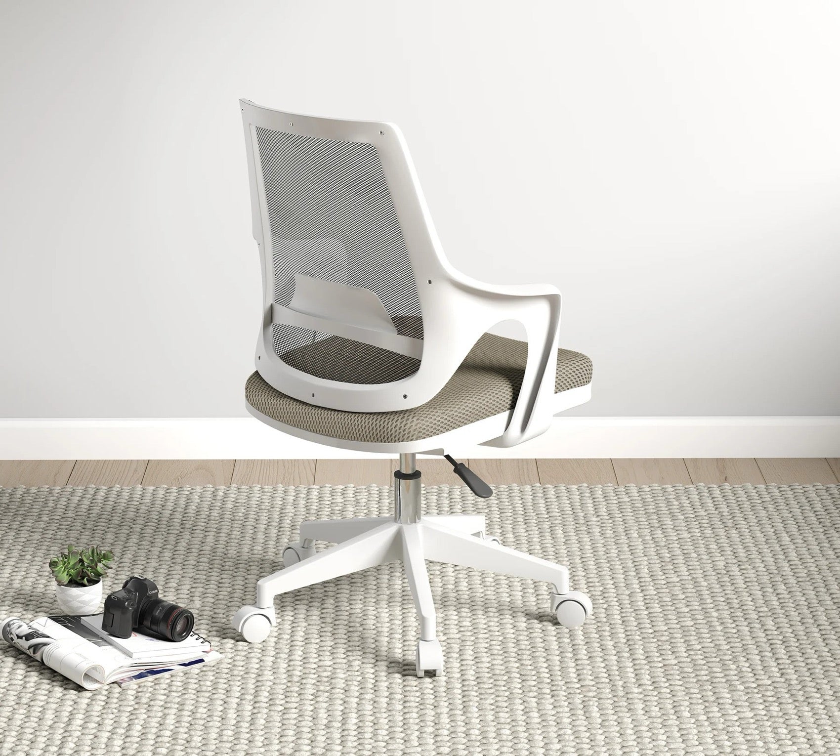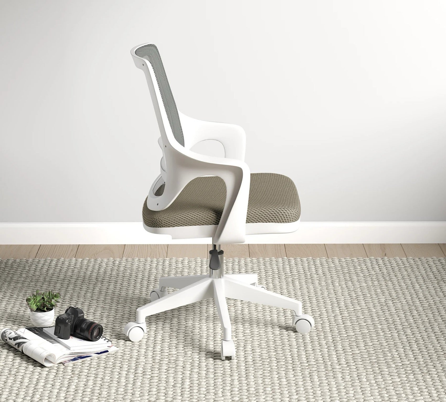 Stolička FLEX v elegantnej bielej a kaki farbe je ideálnym doplnkom do každého študentského alebo pracovného priestoru. Je navrhnutá s dôrazom na potreby detí a mládeže - je ergonomická a vďaka kvalitnému polstrovaniu a priedušnej sieťovine zabezpečuje komfort počas dlhodobého sedenia. Mobilita je zabezpečená kolieskami, čo umožňuje jednoduché presúvanie po miestnosti bez námahy. Výška stoličky sa dá jednoducho nastaviť podľa individuálnych potrieb používateľa, čo zaručuje prispôsobenie sa rôznym pracovným podmienkam.