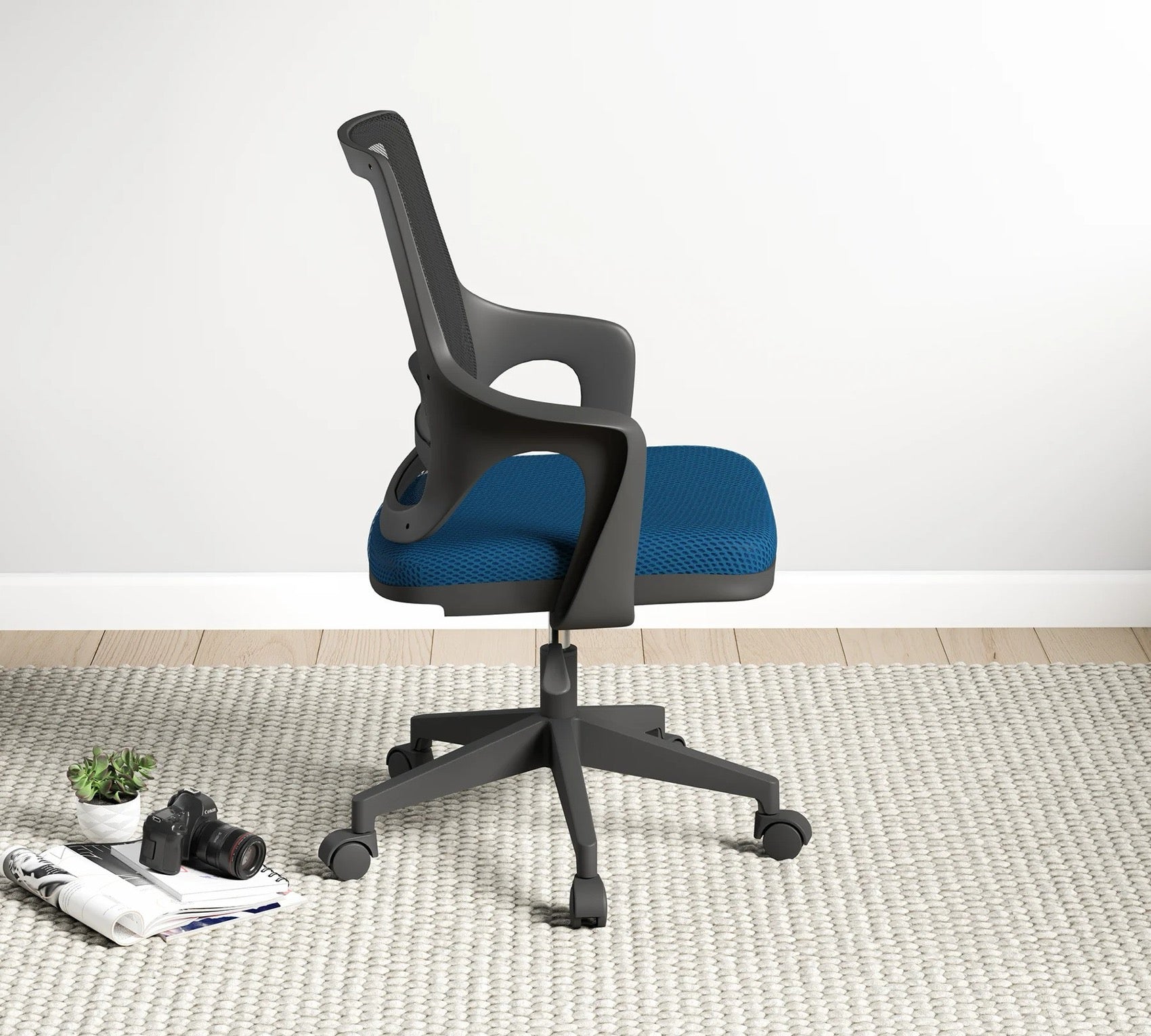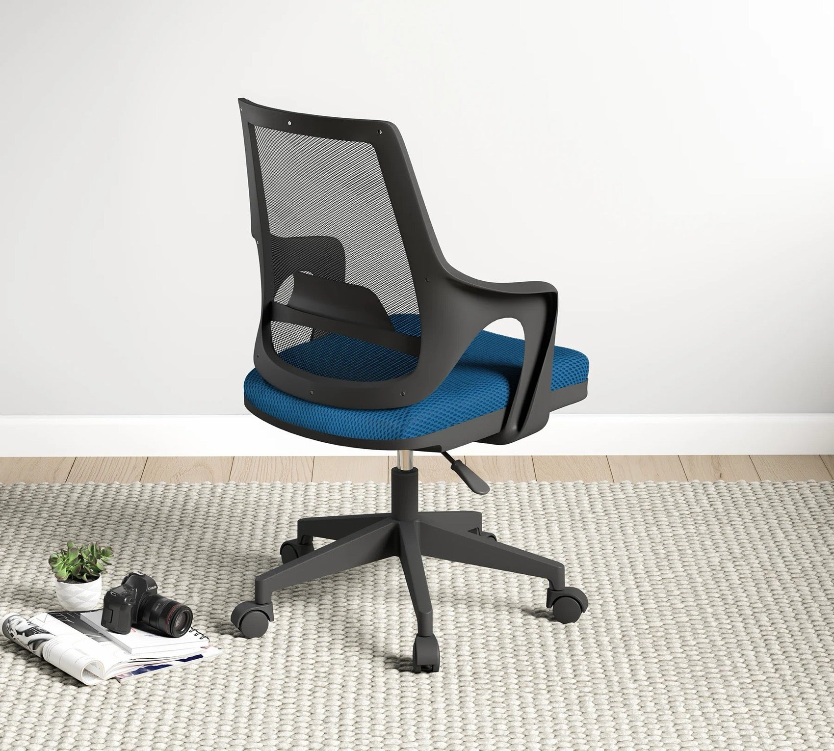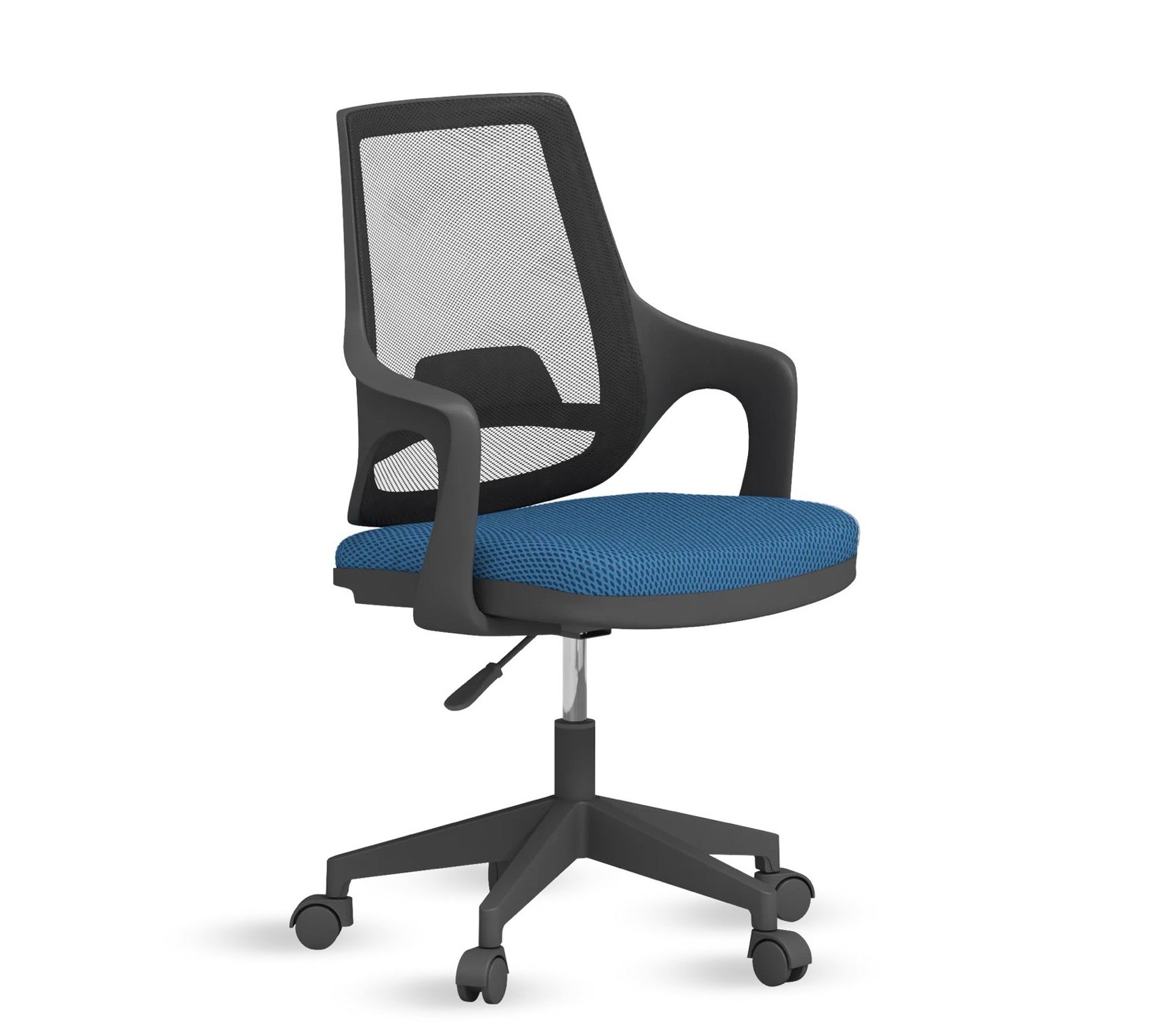 Stolička FLEX v elegantnej čiernej a modrej farbe je ideálnym doplnkom do každého študentského alebo pracovného priestoru. Je navrhnutá s dôrazom na potreby detí a mládeže - je ergonomická a vďaka kvalitnému polstrovaniu a priedušnej sieťovine zabezpečuje komfort počas dlhodobého sedenia. Mobilita je zabezpečená kolieskami, čo umožňuje jednoduché presúvanie po miestnosti bez námahy. Výška stoličky sa dá jednoducho nastaviť podľa individuálnych potrieb používateľa, čo zaručuje prispôsobenie sa rôznym pracovným podmienkam.