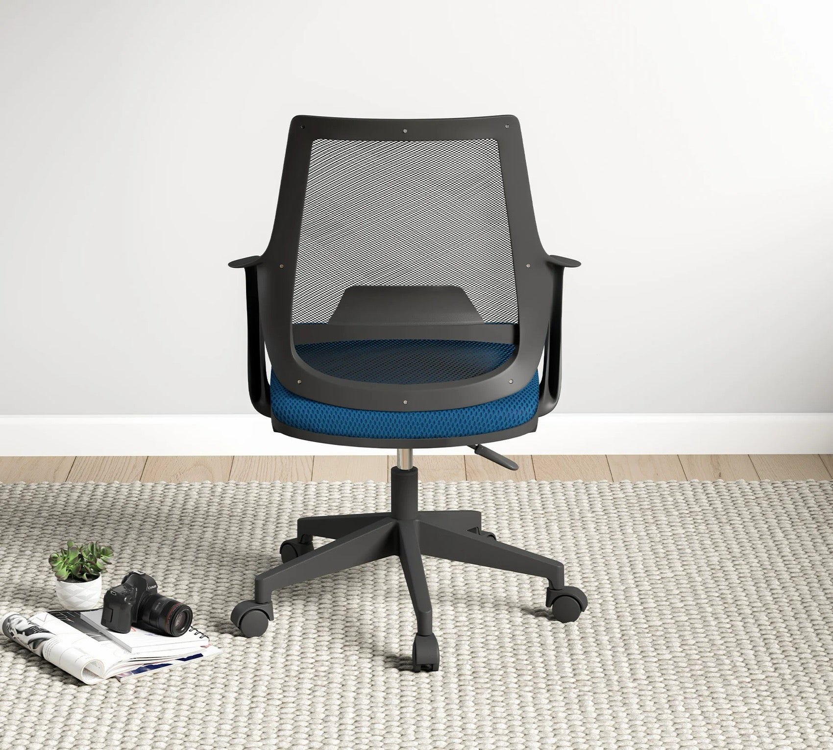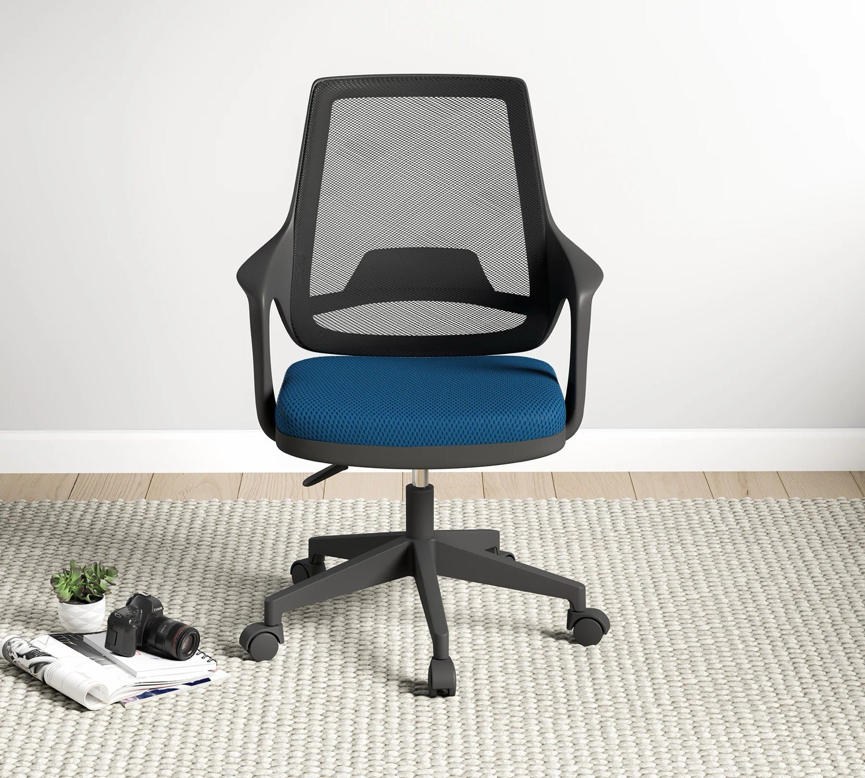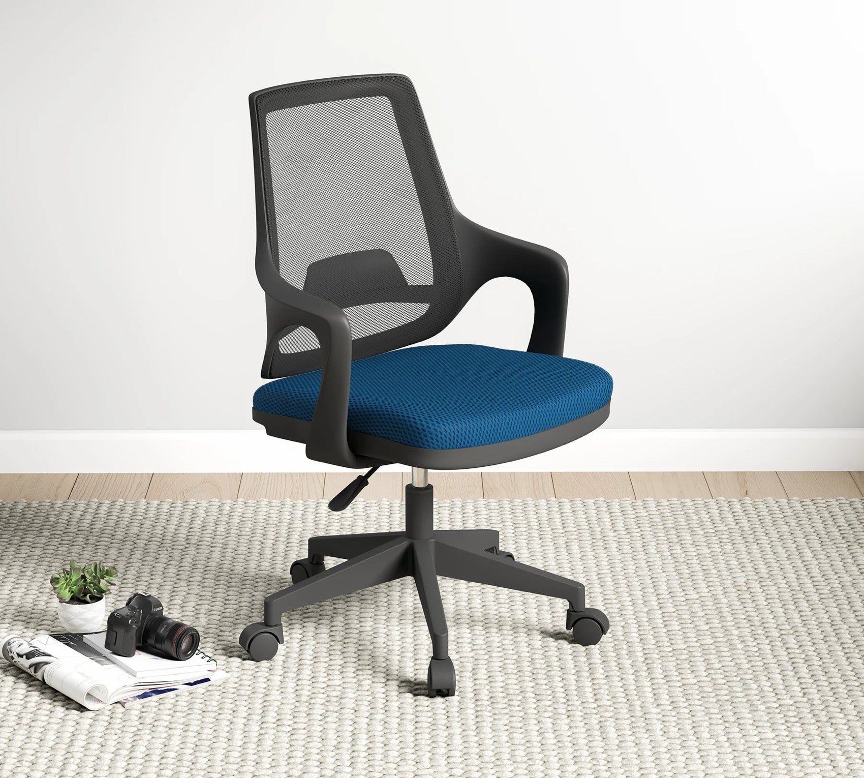 Stolička FLEX v elegantnej čiernej a modrej farbe je ideálnym doplnkom do každého študentského alebo pracovného priestoru. Je navrhnutá s dôrazom na potreby detí a mládeže - je ergonomická a vďaka kvalitnému polstrovaniu a priedušnej sieťovine zabezpečuje komfort počas dlhodobého sedenia. Mobilita je zabezpečená kolieskami, čo umožňuje jednoduché presúvanie po miestnosti bez námahy. Výška stoličky sa dá jednoducho nastaviť podľa individuálnych potrieb používateľa, čo zaručuje prispôsobenie sa rôznym pracovným podmienkam.