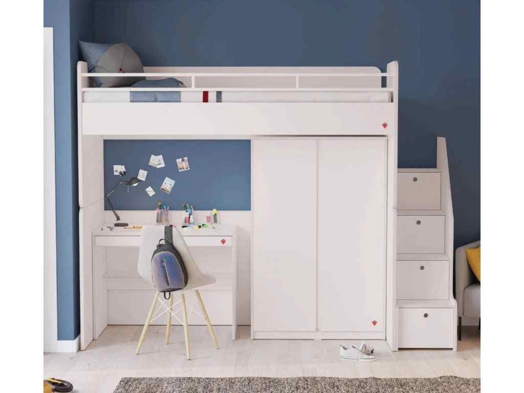 Študentská vyvýšená posteľ STUDIO VARIA WHITE je ideálnym riešením do detskej izby, kde ušetrí množštvo priestoru. Voľný priestor pod posteľou je ideálny na vytvorenie hracieho kútika, pracovného stola alebo úložného priestoru - podľa potrieb a fantázie dieťaťa aj rodičov. Pre ešte lepšie využitie priestoru odporúčame doplniť izbu o ďalšie lôžko, skriňu či písací stôl z rovnakej série.